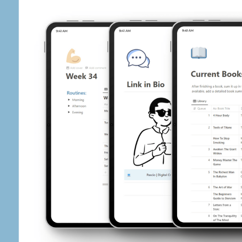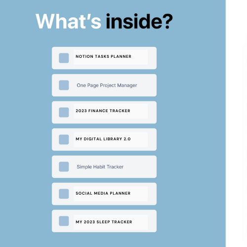 8 templates in one workspace - 1 Page PMO + My Digital Library + Simple Habits Tracker + Notion Tasks + Notion Finance Tracker + Content Planner + Minimalist Planner + 2023 Sleep Tracker
