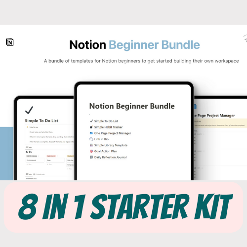 Notion Beginner Bundle for 8 in 1 Template, Notion Starter Kit, Digital Planning Templates, Minimalist