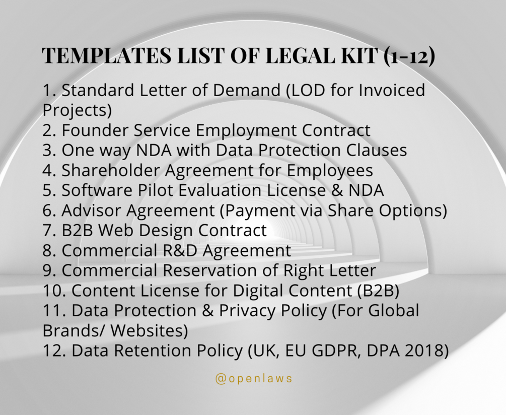 Each template in this kit has been painstakingly drafted and rigorously reviewed by experienced lawyers, ensuring legal precision and compliance. From employment agreements to data privacy policies, founder contracts to shareholder agreements, NDA and an array of commercial contracts, including R&D, web design, content license, Software development and more, this kit encompasses all the essential legal documents your business requires.